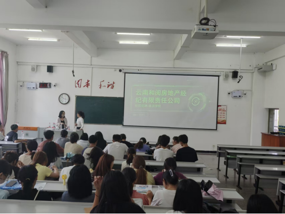 为搭建校企人才合作桥梁,助力我院2025届毕业生精准对接行业资源。2025年5月23日,我院邀请了云南和阅房地产经纪有限公司代表入校为2025届毕业生开展招聘宣讲。宣讲会上,云南和阅房地产经纪有限公司代表重点介绍了其公司的校园招聘政策、岗位需求及职业发展平台。现场还设置了互动问答环节,同学们就薪资待遇、工作地点等问题踊跃提问。云南和阅房地产经纪有限公司表示,将为优秀毕业生提供广阔的发展空间和优厚的薪资福利,欢迎同学们加入云南和阅房地产经纪有限公司大家庭。