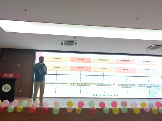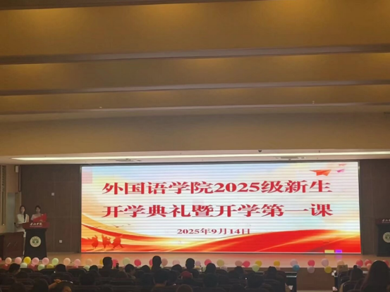 为热烈欢迎2025级新生加入外国语学院,为新生营造浓厚的开学氛围,帮助新生尽快适应大学生活、明确奋斗目标,2025年9月14日晚7:00,外国语学院特举办2025级新生开学典礼暨开学第一课活动。外国语学院领导、2025级辅导员与班主任、全体新生共同参与。